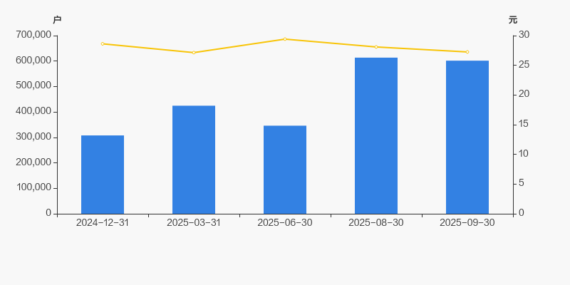 2024年12月31日至今,公司股东户数显著大幅增长,区间涨幅达95.46%。2024年12月31日至2025年9月30日区间股价下降4.79%。