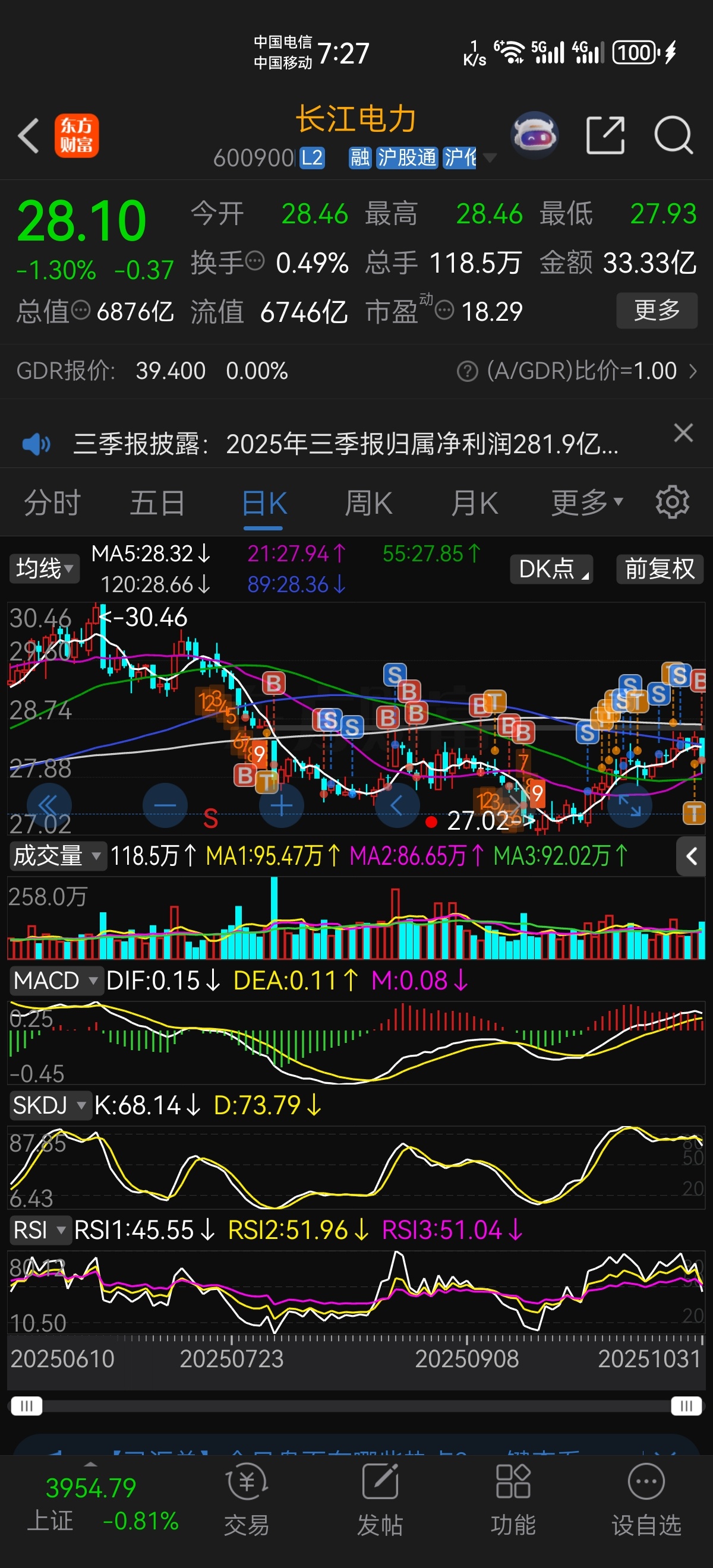 $长江电力(SH600900)$ 成本还是有点高,希望能再给机会降降