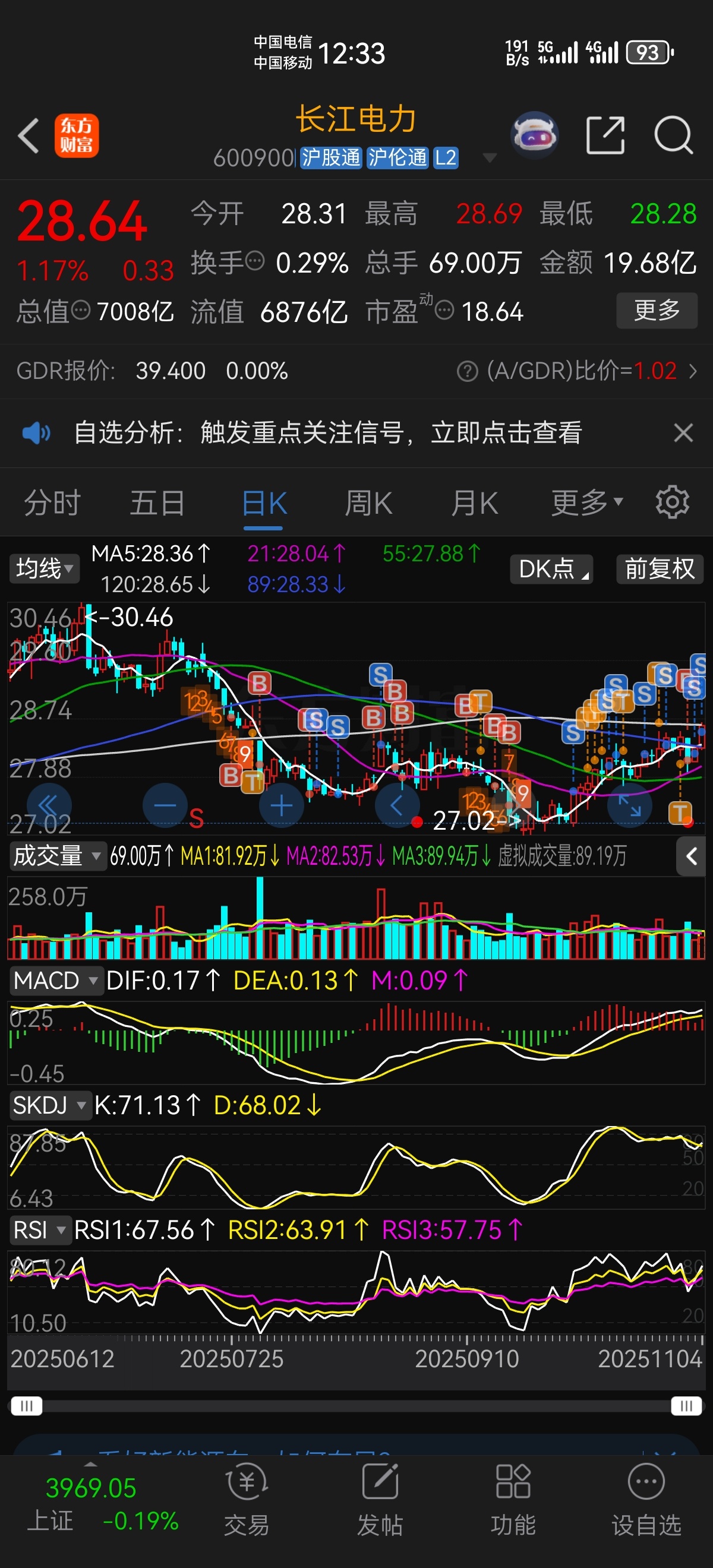 成本27.2,加油啊长江电力