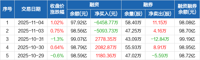 长江电力:融资净偿还6458.77万元,融资余额97.92亿元(11-04)