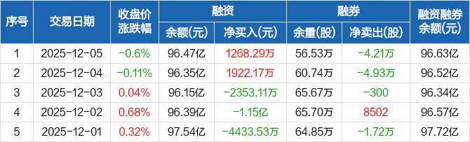 长江电力:融资净买入1268.29万元,融资余额96.47亿元(12-05)