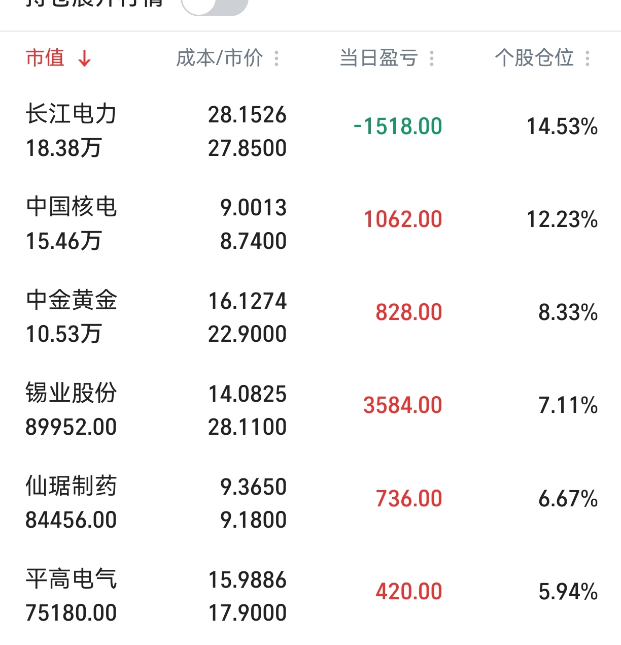 $长江电力(SH600900)$ 持仓最多亏损最大