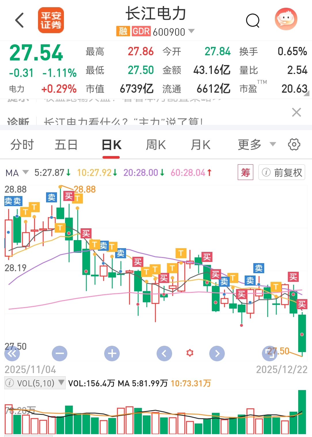 $长江电力(SH600900)$ 越跌越有性价比,长期投资者可坚定逢低加仓,投机者建议清仓远离,因为这里根本不是赚快钱的地方。我没有理财,没有大额存款,有的只是长江电力……明天继续加仓,分批加仓