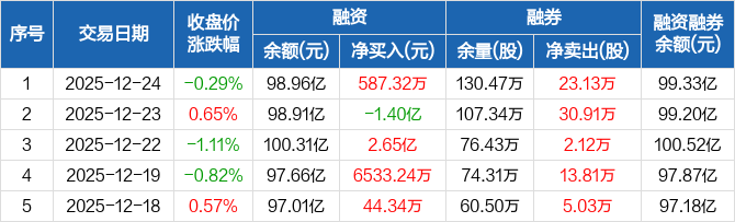 长江电力:融资净买入587.32万元,融资余额98.96亿元(12-24)