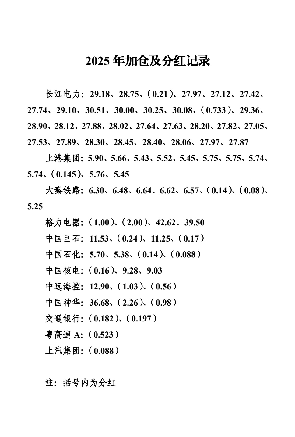 2026年,坚持上述两个目标不变,计划主要加仓长江电力,其次加仓上港集团,择机加仓其他公司