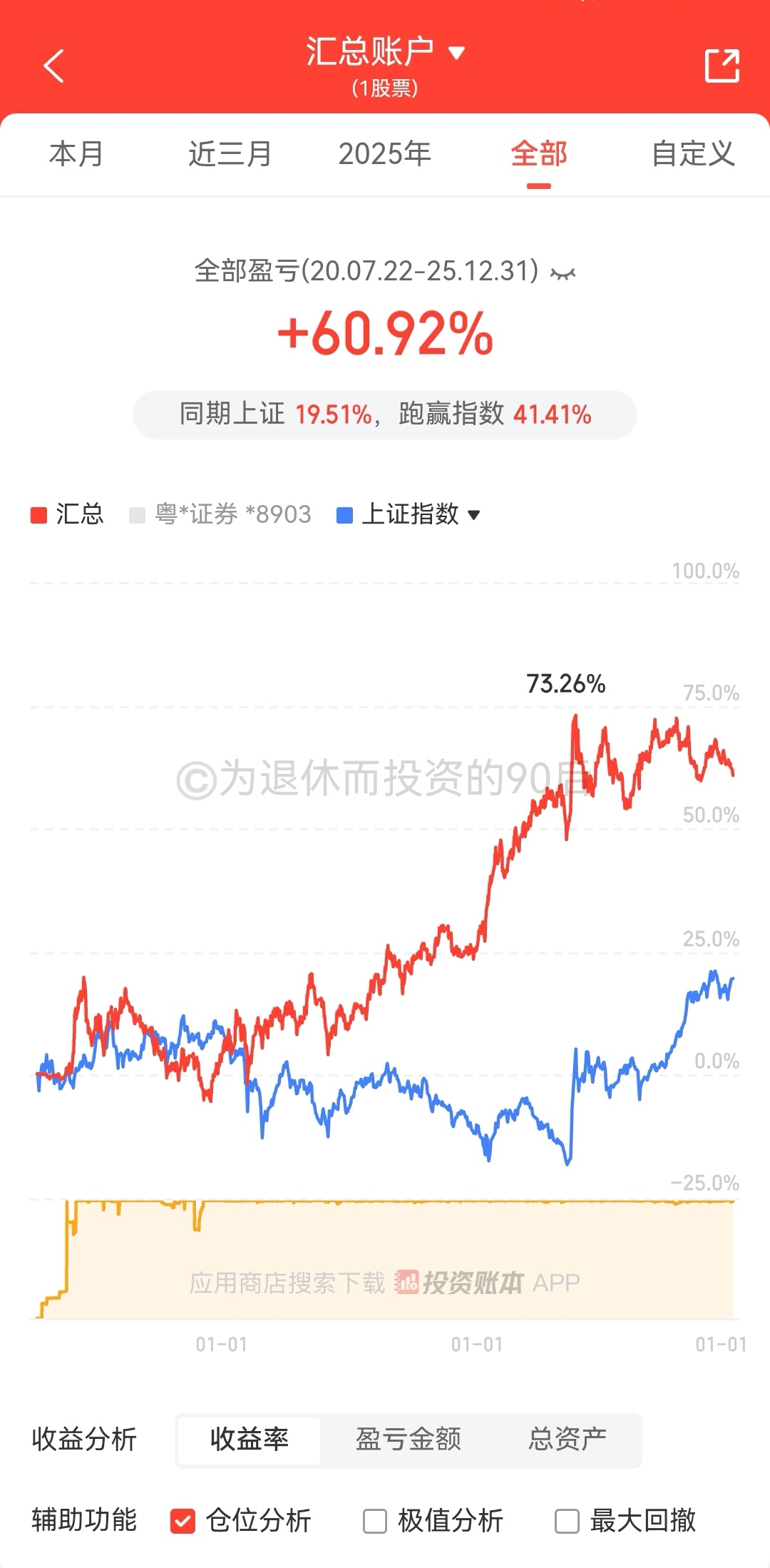 投资以来,累计加仓315次,收到分红70次,收益率60.92%,跑赢上证41.41%