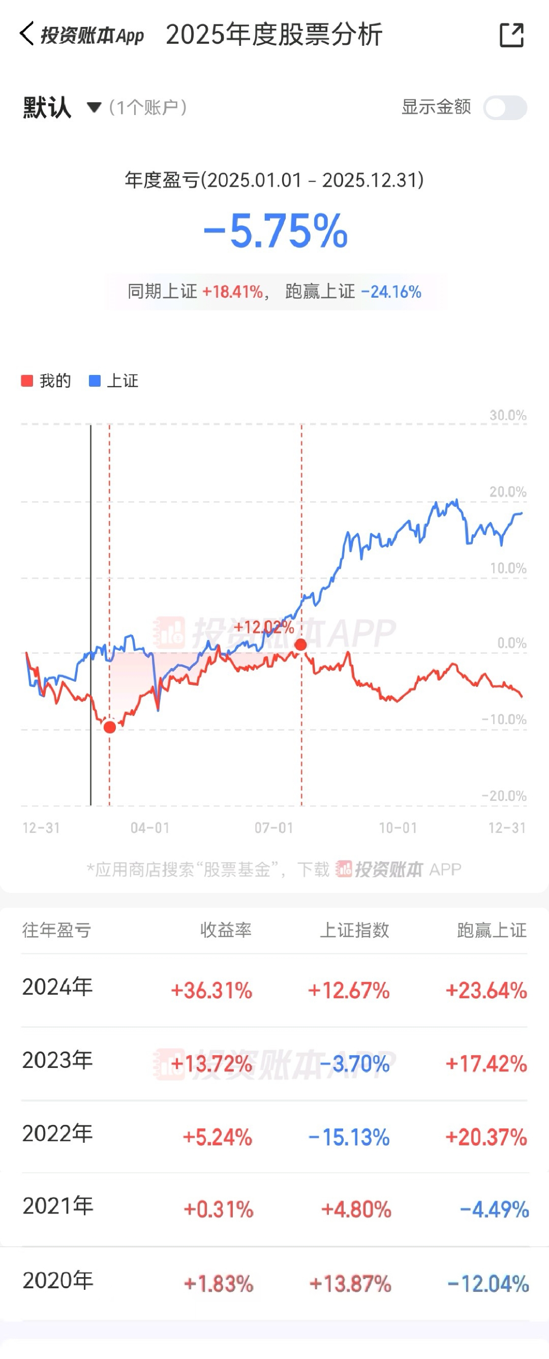 自2020年7月入市以来,2025年是我投资的第6年,也是首次出现年度亏损的1年