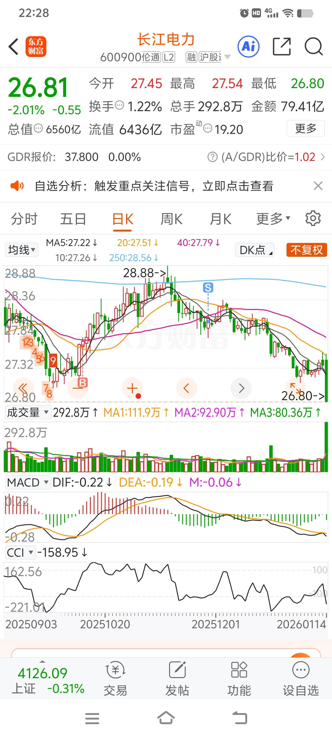 $长江电力(SH600900)$ 这不是破位是什么?