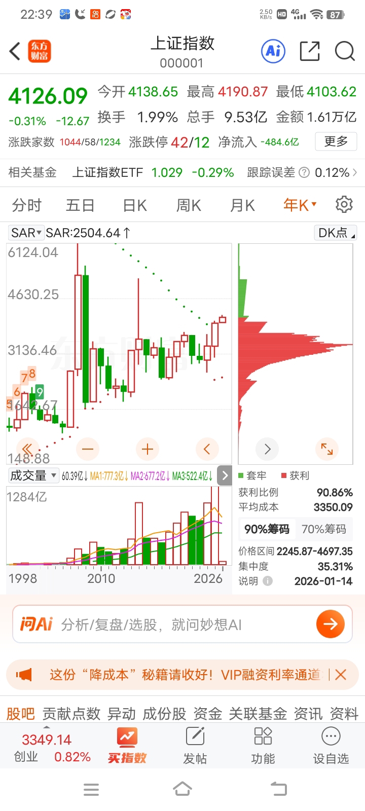 上证指数4126点,最高位6124。