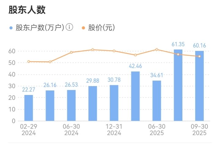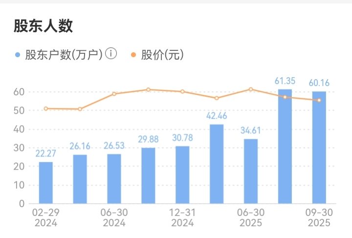 9.2025年8月股东人数激增:从30万户左右暴涨到61.36万户,增长约30万户,反映了散户在股价调整期间大量入场。