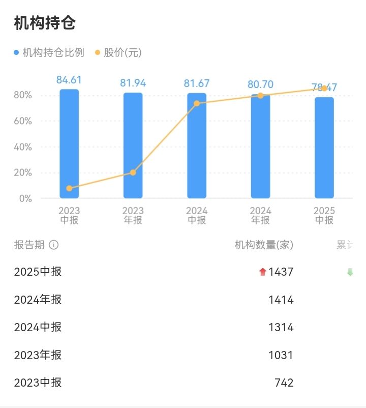 2024年股东户数较2022年增长2.99%,户均持股市值下降4.51%,显示低位筹码已分散至散户,主力完成高位派发。但从2025年的变化来看,机构正在重新收集筹码。