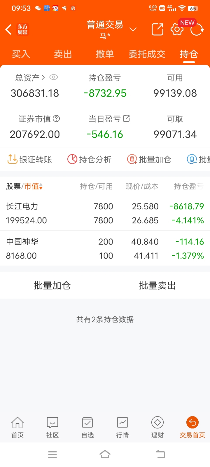 准备25.30元买进100股长江电力,今天踢了一手中国神华。