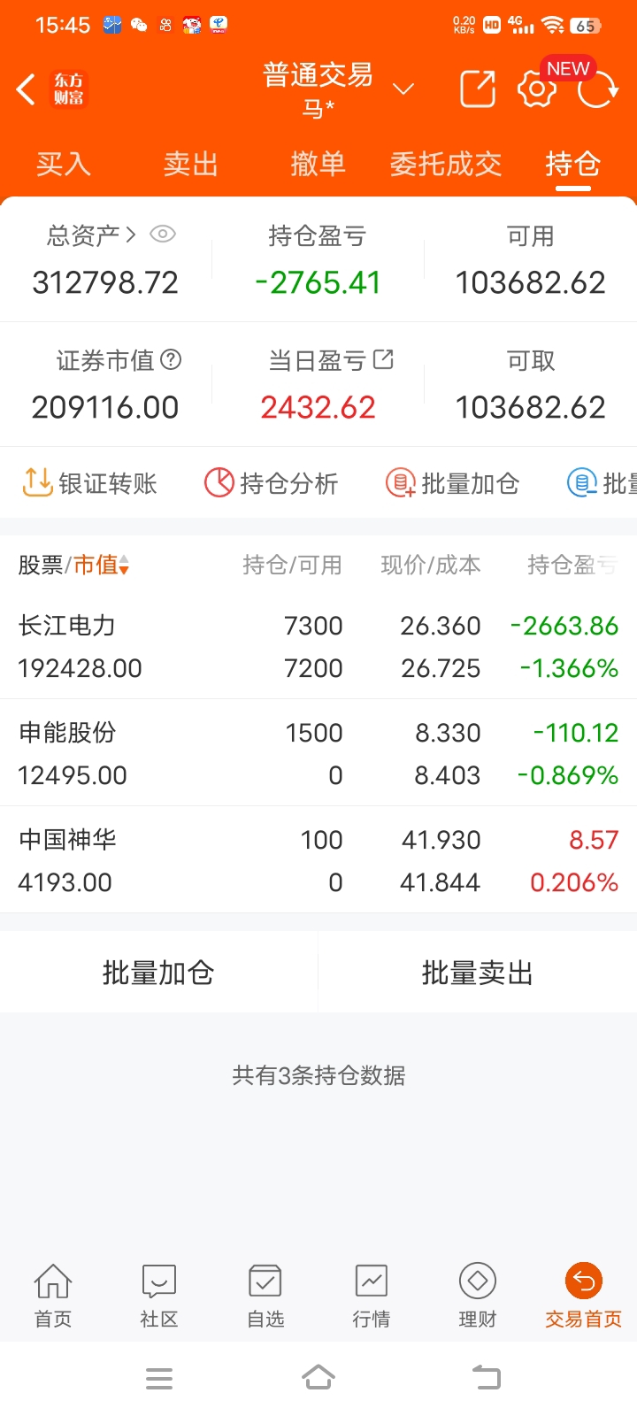等待2月2号开盘,长江电力从25.38元已反弹1元左右。
