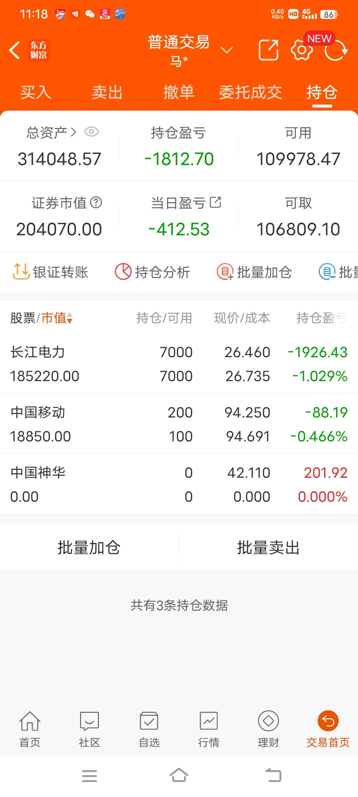 $长江电力(SH600900)$ 中国神华再次清仓,又挣了近200元。