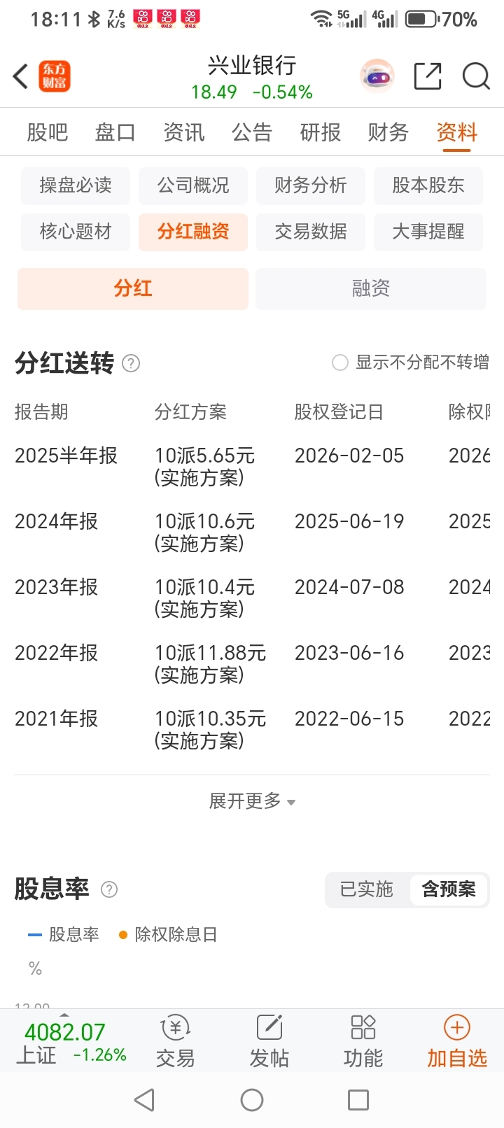 兴业银行2025年年报分红每股0.56元左右,参考工商银行。