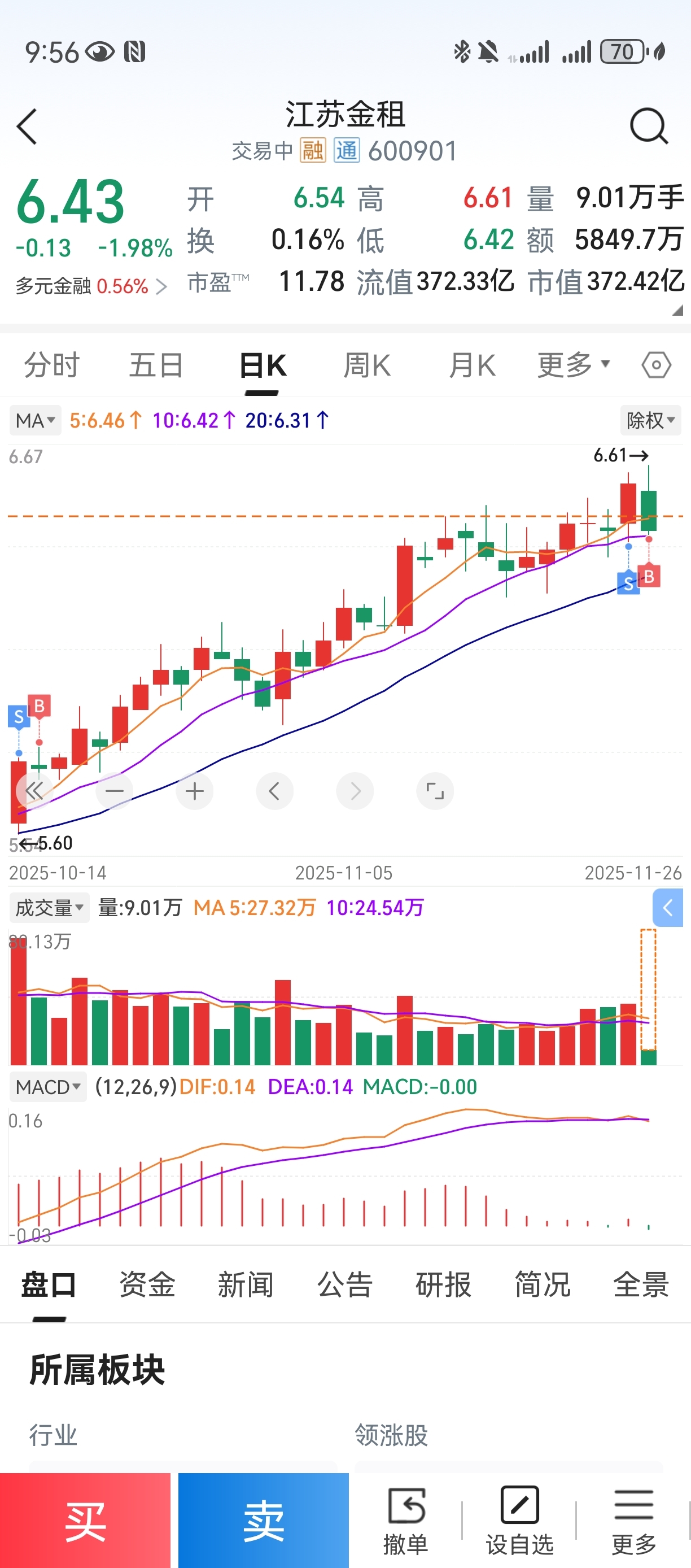 $江苏金租(SH600901)$ 哈哈哈 直接T了1.7个点我说托单必跌