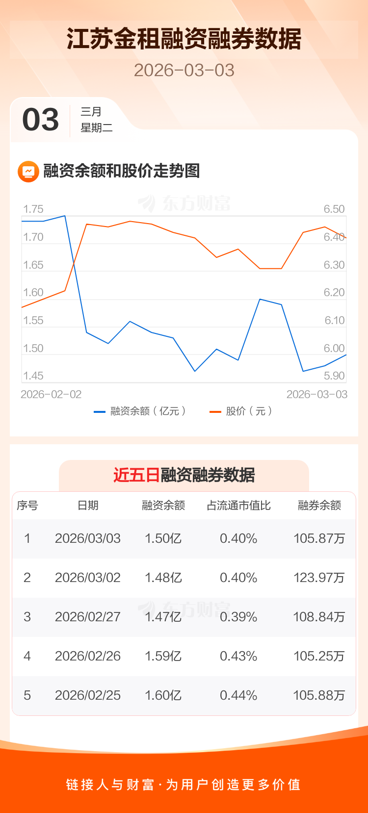 交易所最新数据显示,江苏金租于2026年3月3日获融资买入2832.33万元,融资偿还2658.45万元,当日融资净买入173.88万元。目前,该股融资余额1.50亿,占流通市值比例为0.40%。