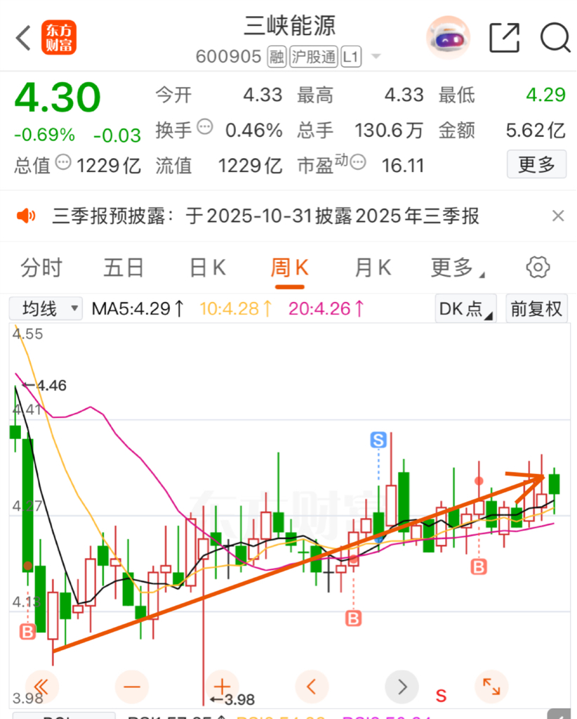 $三峡能源(SH600905)$ 周线形态非常好,一周涨两分钱,再有两年就回本了.加油,长期投资,坚定持有!#炒股日记# #复盘记录# #周末杂谈#