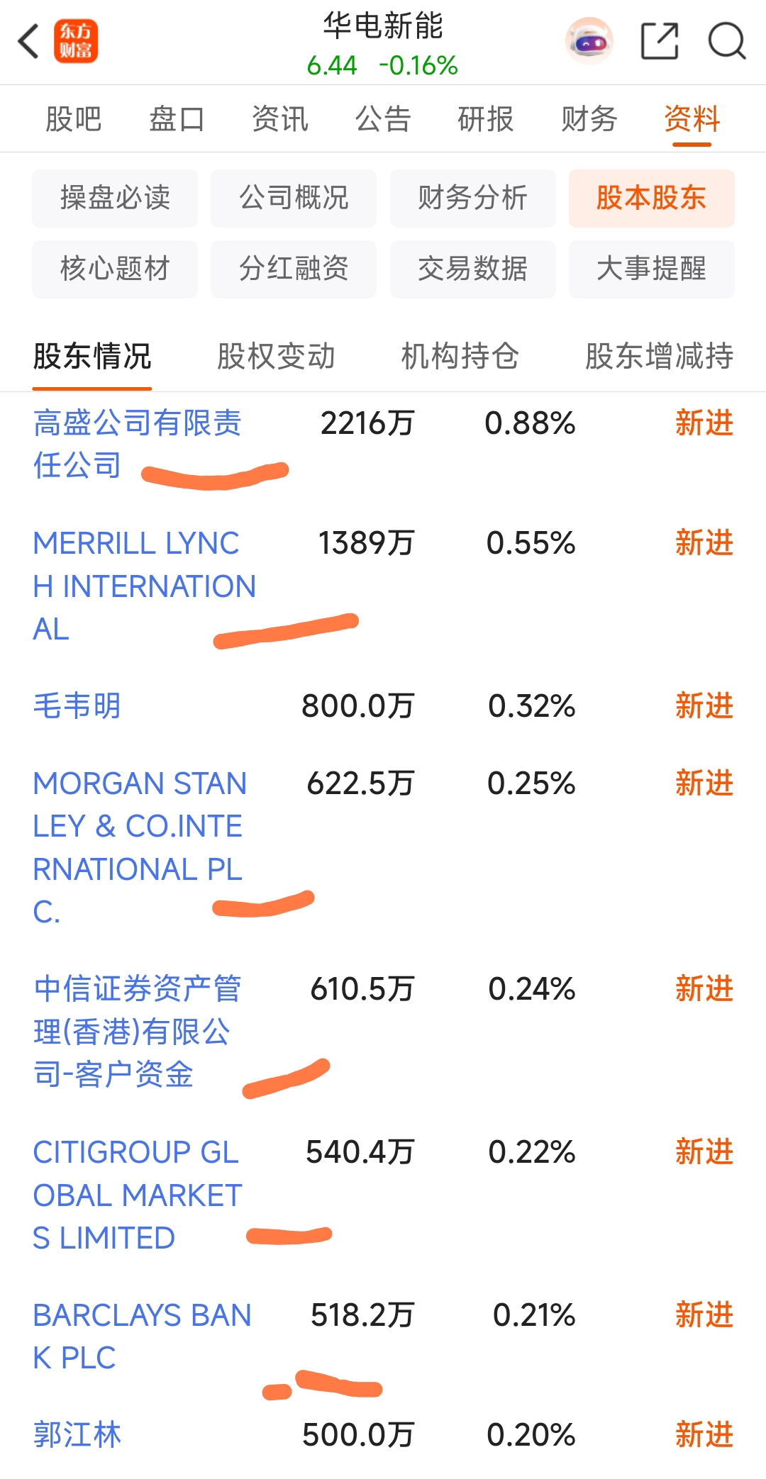 华电新能十大流通股东6家是外资机构,疯狂扫货,强烈看好中国新能源发电。估计三峡外