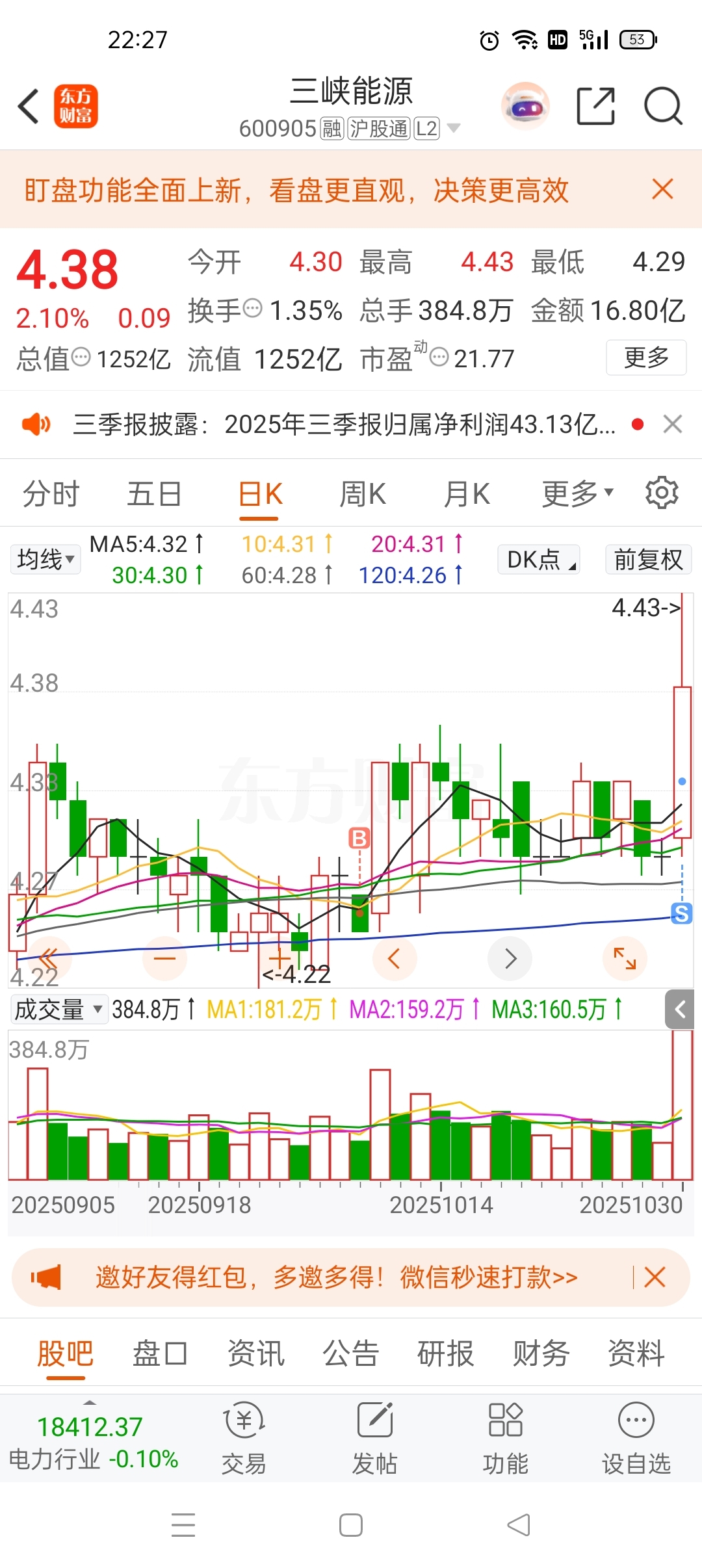 $三峡能源(SH600905)$ 坚持一个月,开始几次没有卖,这次4.32卖光了