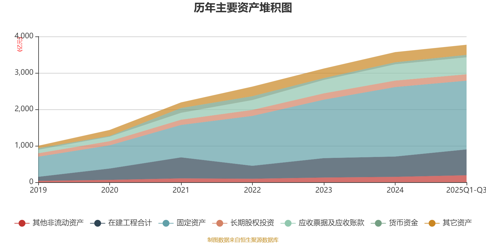 资产重大变化方面,截至2025年三季度末,公司固定资产较上年末减少1.16%,占公司总资产比重下降3.44个百分点;在建工程合计较上年末增加27.54%,占公司总资产比重上升3.23个百分点;其他非流动资产较上年末增加29.64%,占公司总资产比重上升0.94个百分点;划分为持有待售的资产较上年末减少100%,占公司总资产比重下降0.3个百分点。