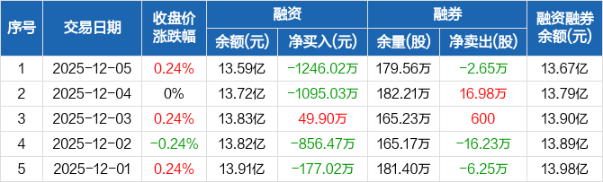 三峡能源:融资净偿还1246.02万元,融资余额13.59亿元(12-05)