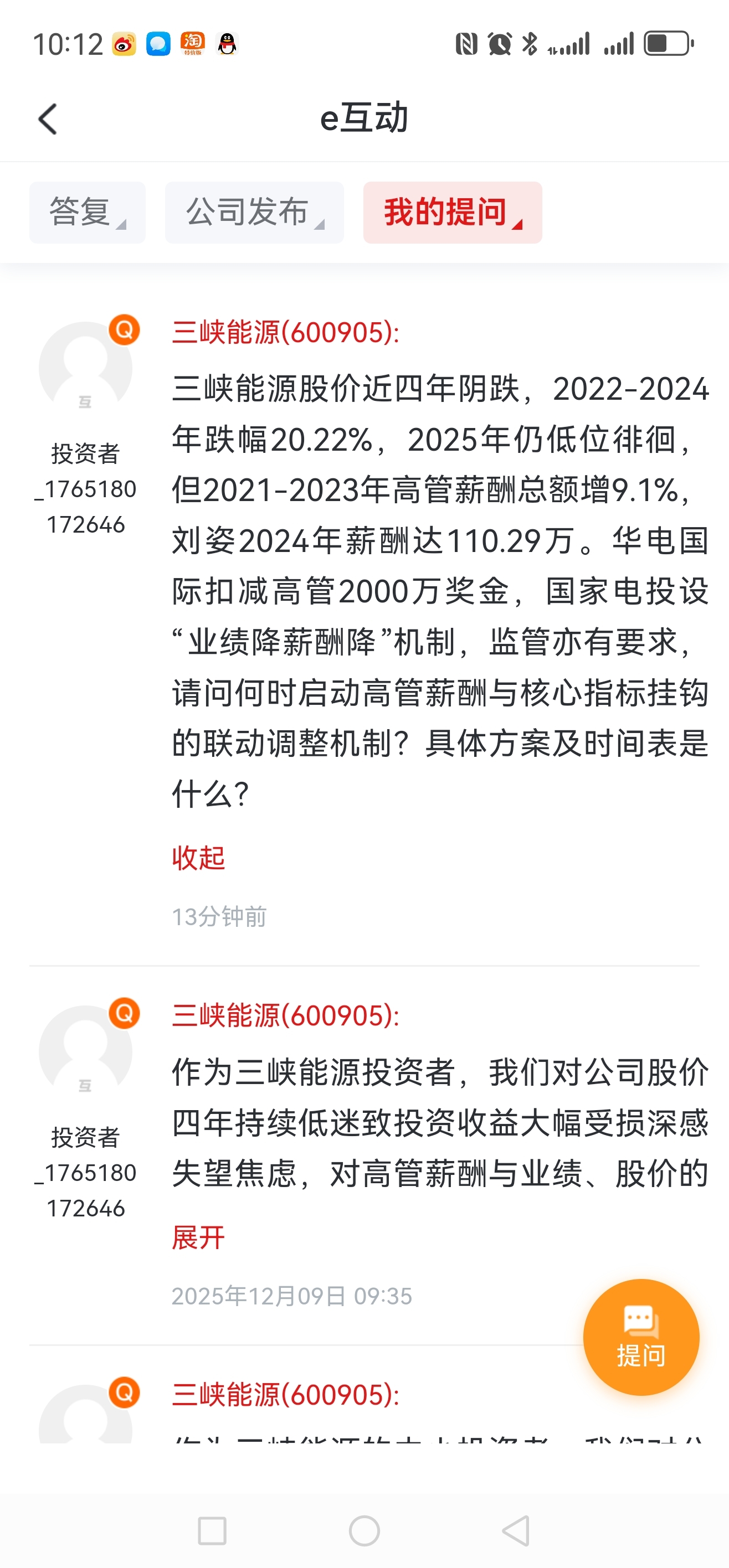 $三峡能源(SH600905)$ 都去上证所app,每个股东你都有权利提出自己正当合理的想法,每天复制粘贴给自己抬轿。