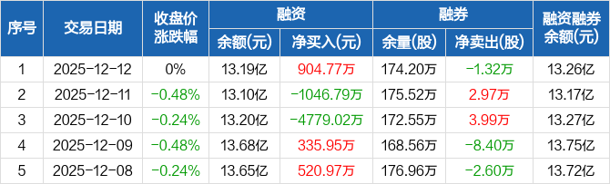 三峡能源:融资净买入904.77万元,融资余额13.19亿元(12-12)