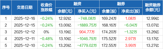 三峡能源:融资净偿还748.08万元,融资余额12.92亿元(12-16)