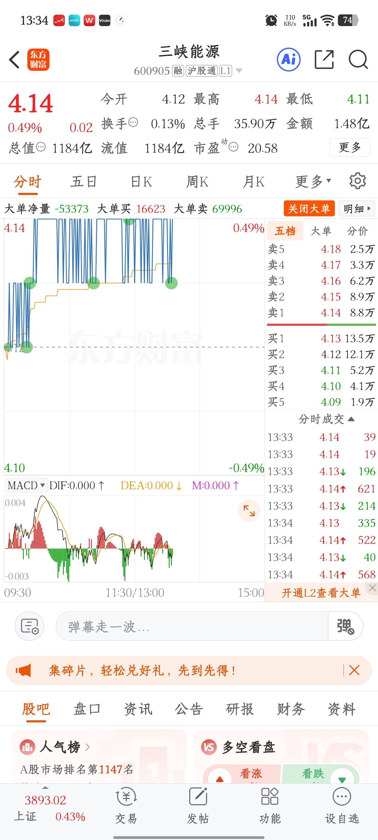 $三峡能源(SH600905)$ 卖!!!卖!!!!