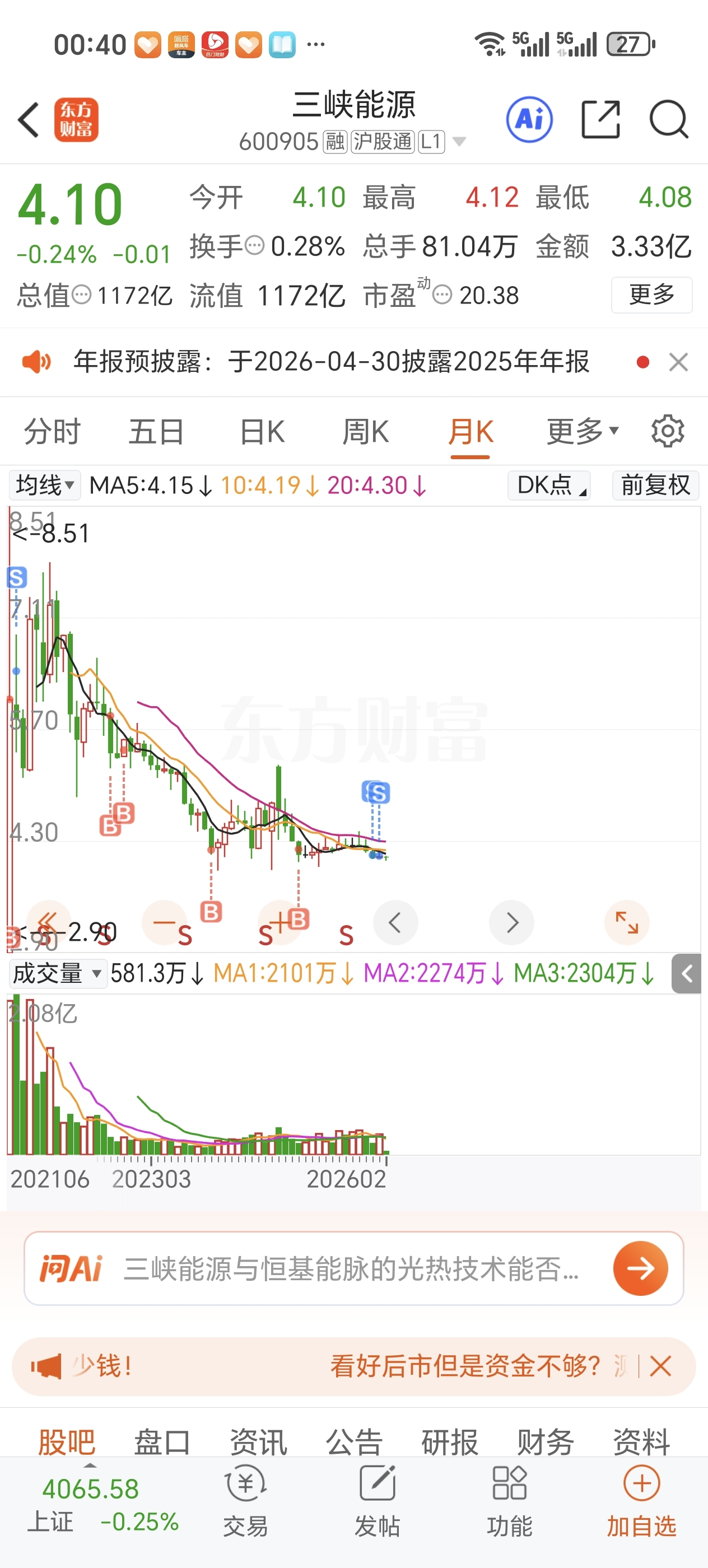 $三峡能源(SH600905)$