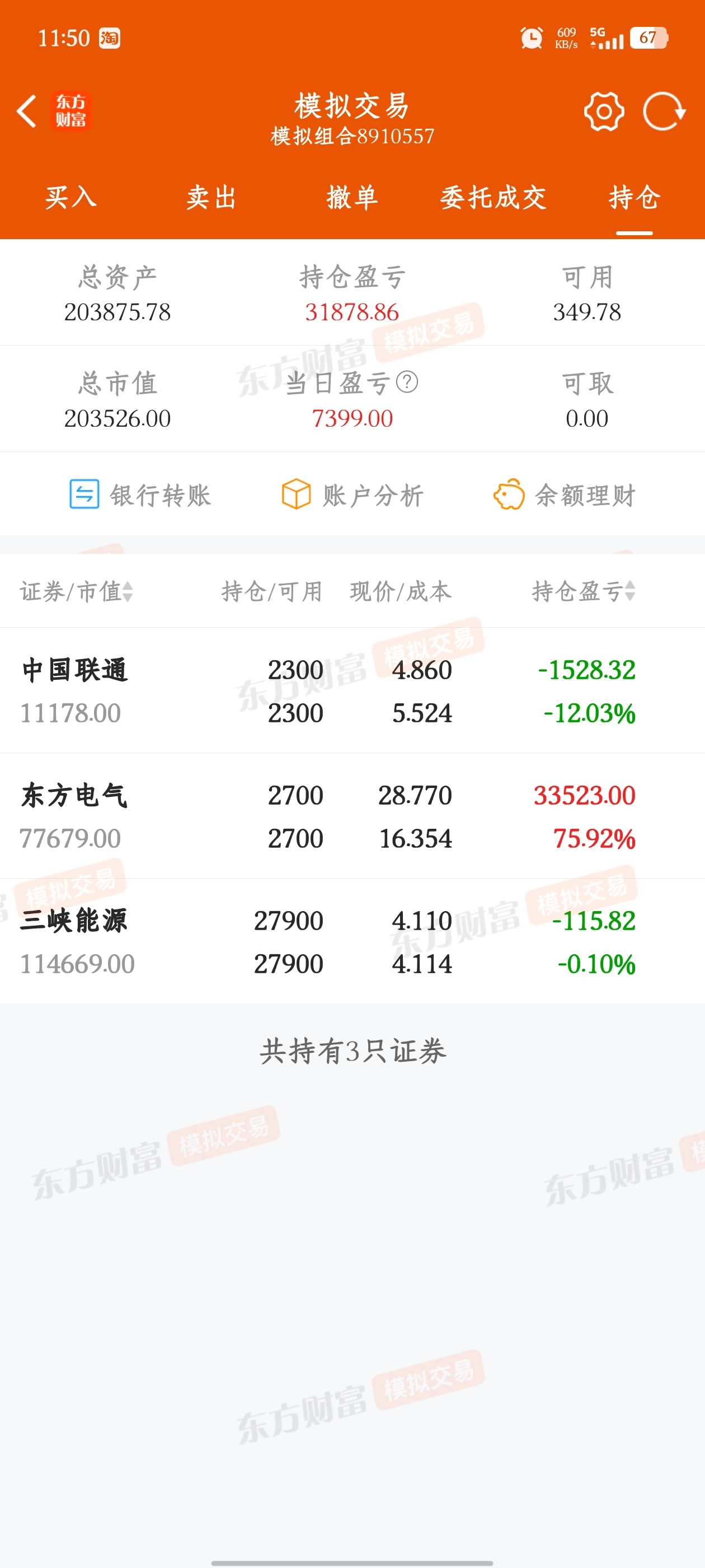 $三峡能源(SH600905)$ 实盘重仓你,摸拟盘是这样!