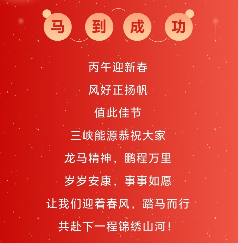 丙午迎新春,风好正扬帆。值此佳节,三峡能源给您拜年啦,恭祝大家龙马精神,岁岁安康