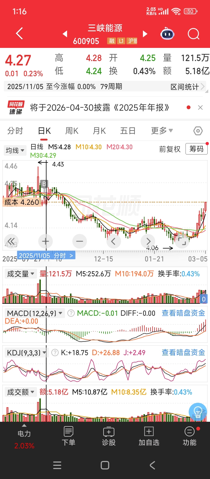 $三峡能源(SH600905)$ 拿了3个月才解套,再也不碰,收盘后有盈利就走,再也不碰。