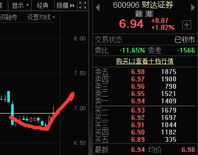 财达证券 黄线(庄家成本线),自救回血,回血结束,卖出了结。