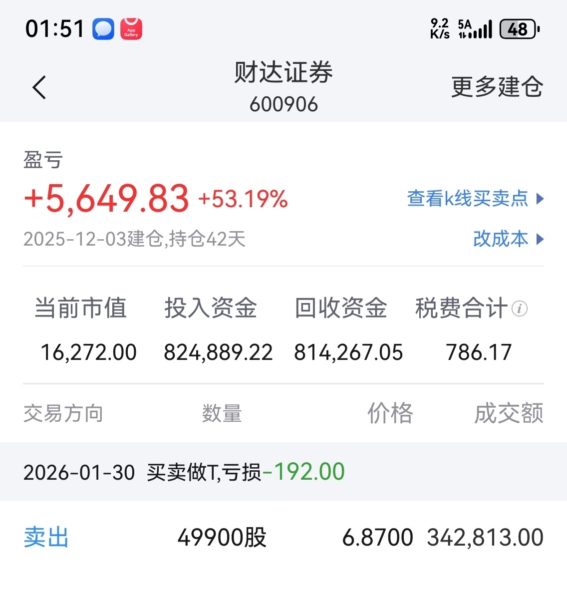 1月份最后一个交易日,卖出三十W。苟财菲物
