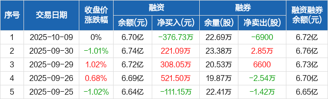 无锡银行:融资净偿还376.73万元,融资余额6.7亿元(10-09)