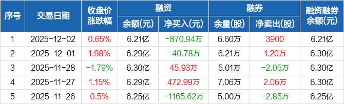 无锡银行:融资净偿还870.94万元,融资余额6.21亿元(12-02)