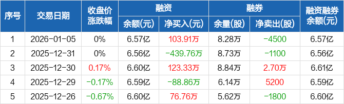 无锡银行:融资净买入103.91万元,融资余额6.57亿元(01-05)