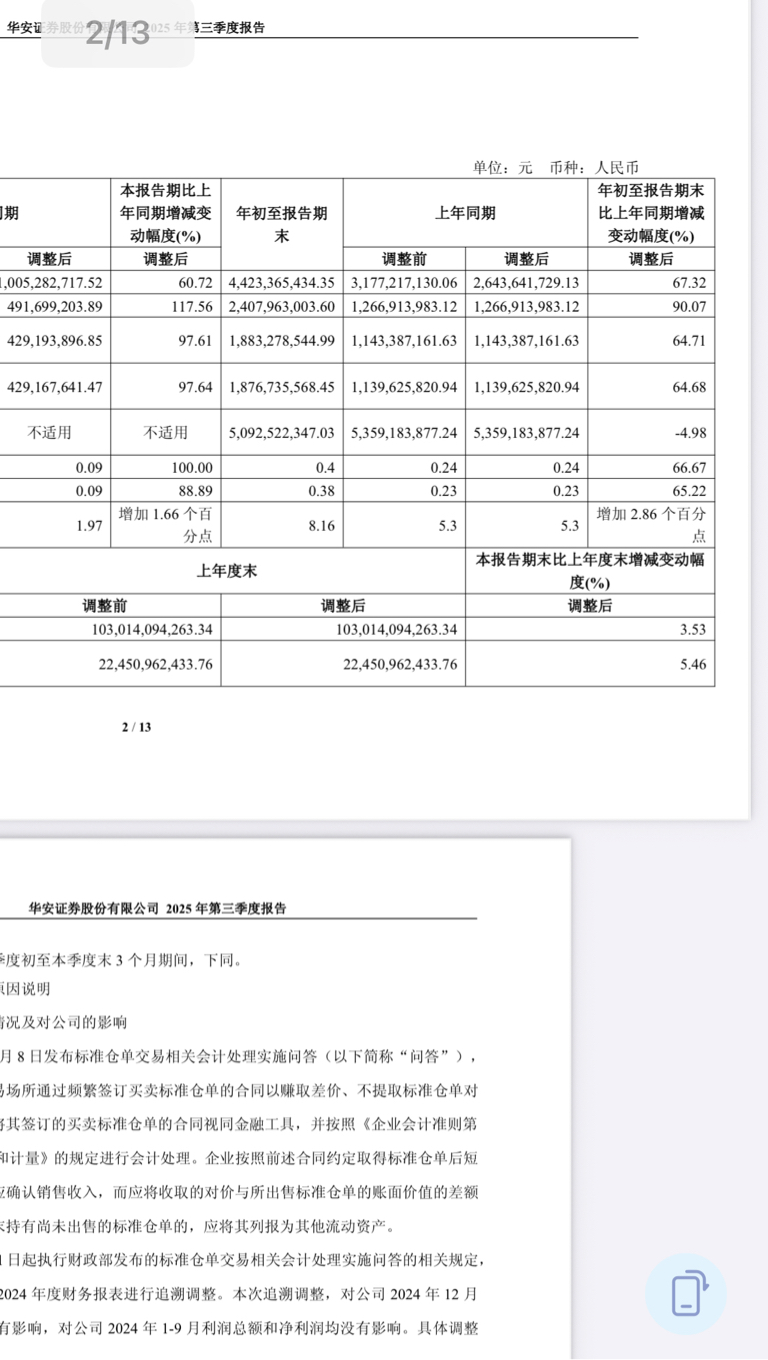 $华安证券(SH600909)$ 2025 3季度营收+67.32%,净利润+64.71%; 相比2季度有大幅上,但涨幅跟不上1季度,因为是慢牛,局部牛行情,抱住大腿就行
