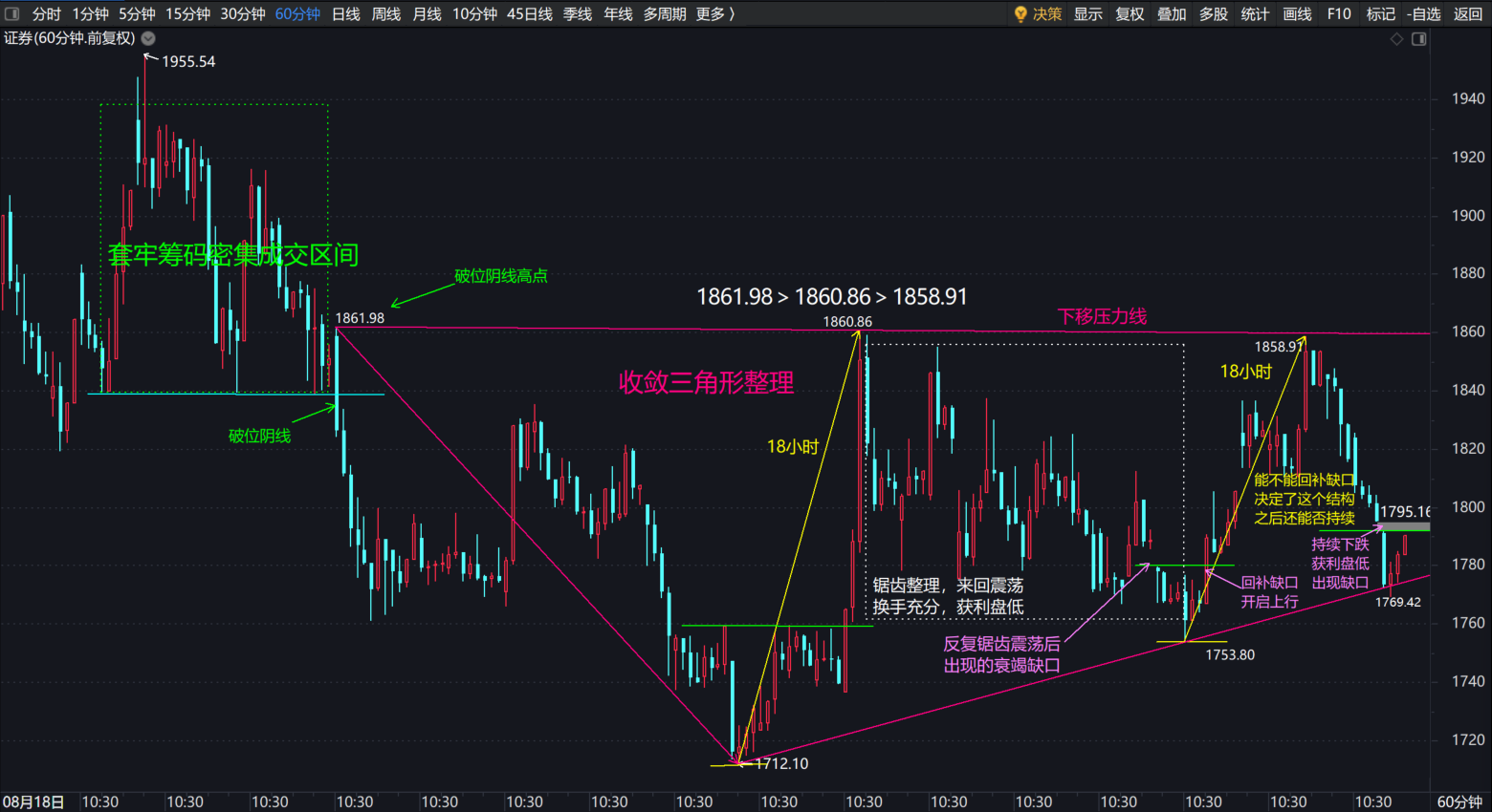 许想想说:证券板块指数60分钟K图,单独拿出来讲一下