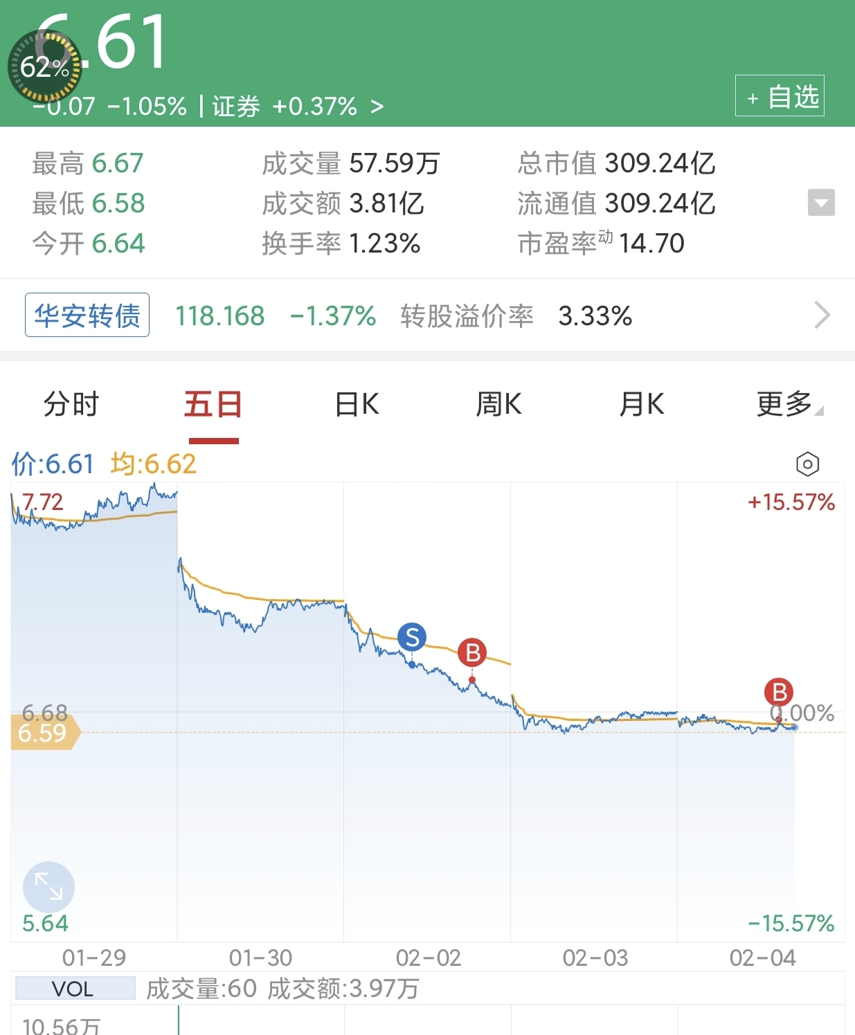$华安证券(SH600909)$ 好了我接回来了,剩下躺平啦。虽然搞不懂你莫名其妙,突然跌。想不通就不想了。分开两次接的。然后听天由命。