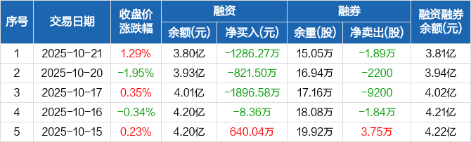 中国黄金:连续4日融资净偿还累计4012.7万元(10-21)