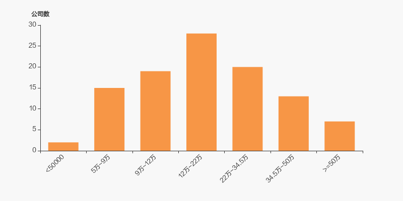 中国黄金股东户数高于行业平均水平。根据Choice数据,截至2025年9月30日纺织服饰行业上市公司平均股东户数为2.88万户。其中,公司股东户数处于1.5万~2.5万区间占比最高,为28.85%。