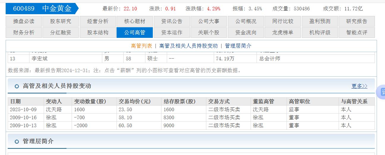 看看人家中金黄金怎么规范操作的, 哪怕买卖个几百股, 中金黄金高管持股变动明细都公布出来.