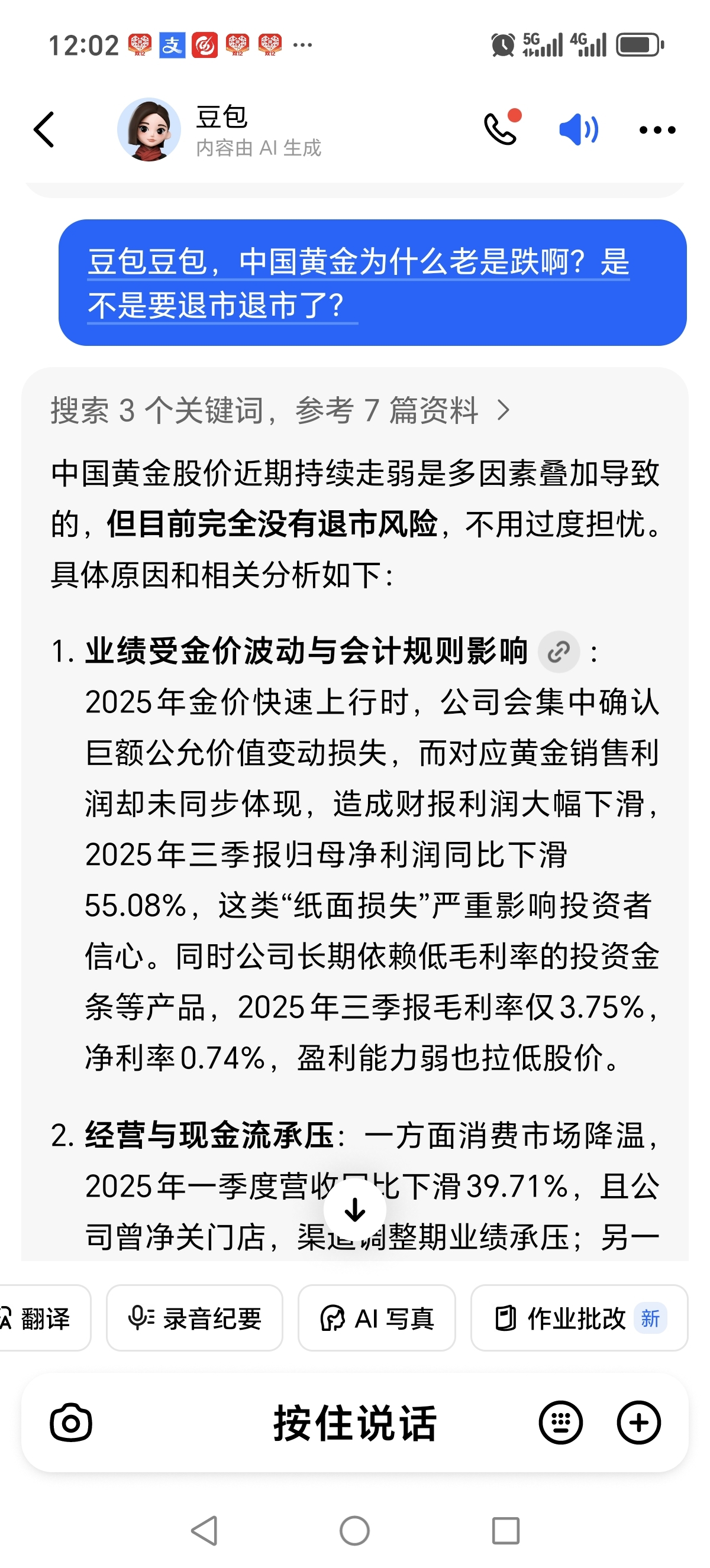 $中国黄金(SH600916)$ 短期没有退市风险大家不用怕