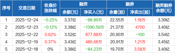 中国黄金:融资净偿还88.89万元,融资余额3.37亿元(12-24)
