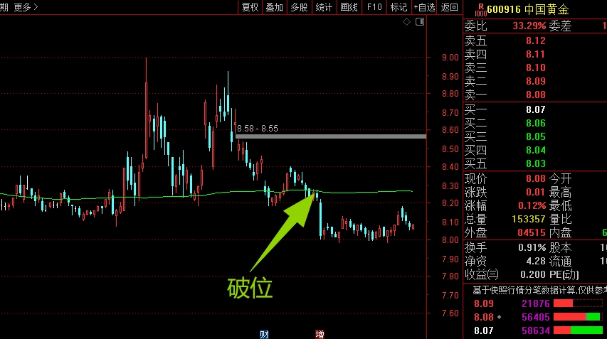 $中国黄金(SH600916)$ 中期趋势走得比较弱,特备是几周跌破了大均线后没有拉起来站稳,形成了破位形态,虽然没有继续下跌远离,但这种形态就需要谨慎应对,不要随便重仓,等站稳了大均线后再说,不着急。#炒股日记# #周度策略#