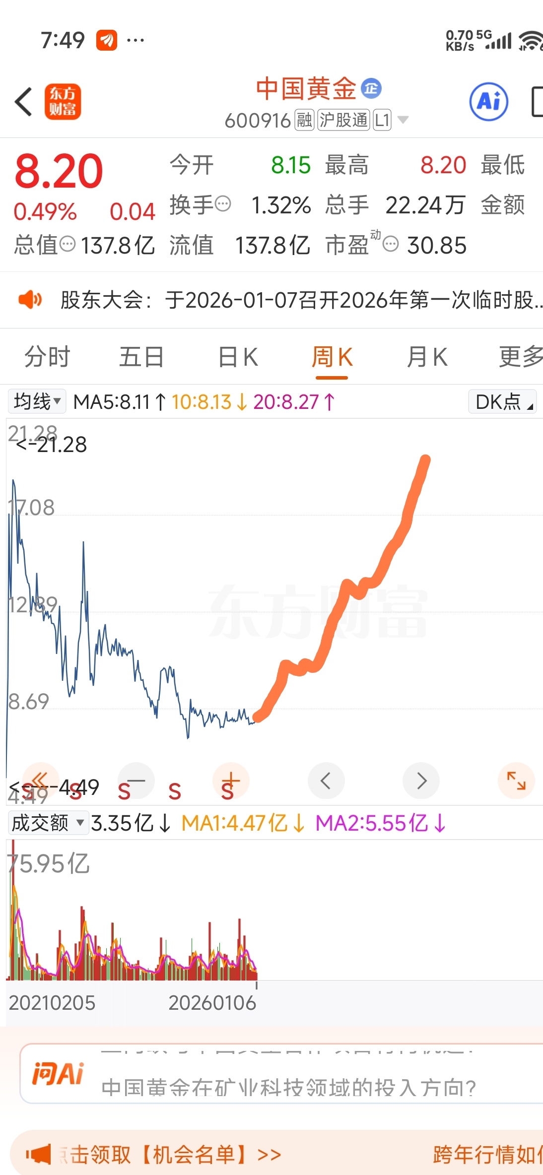 $中国黄金(SH600916)$