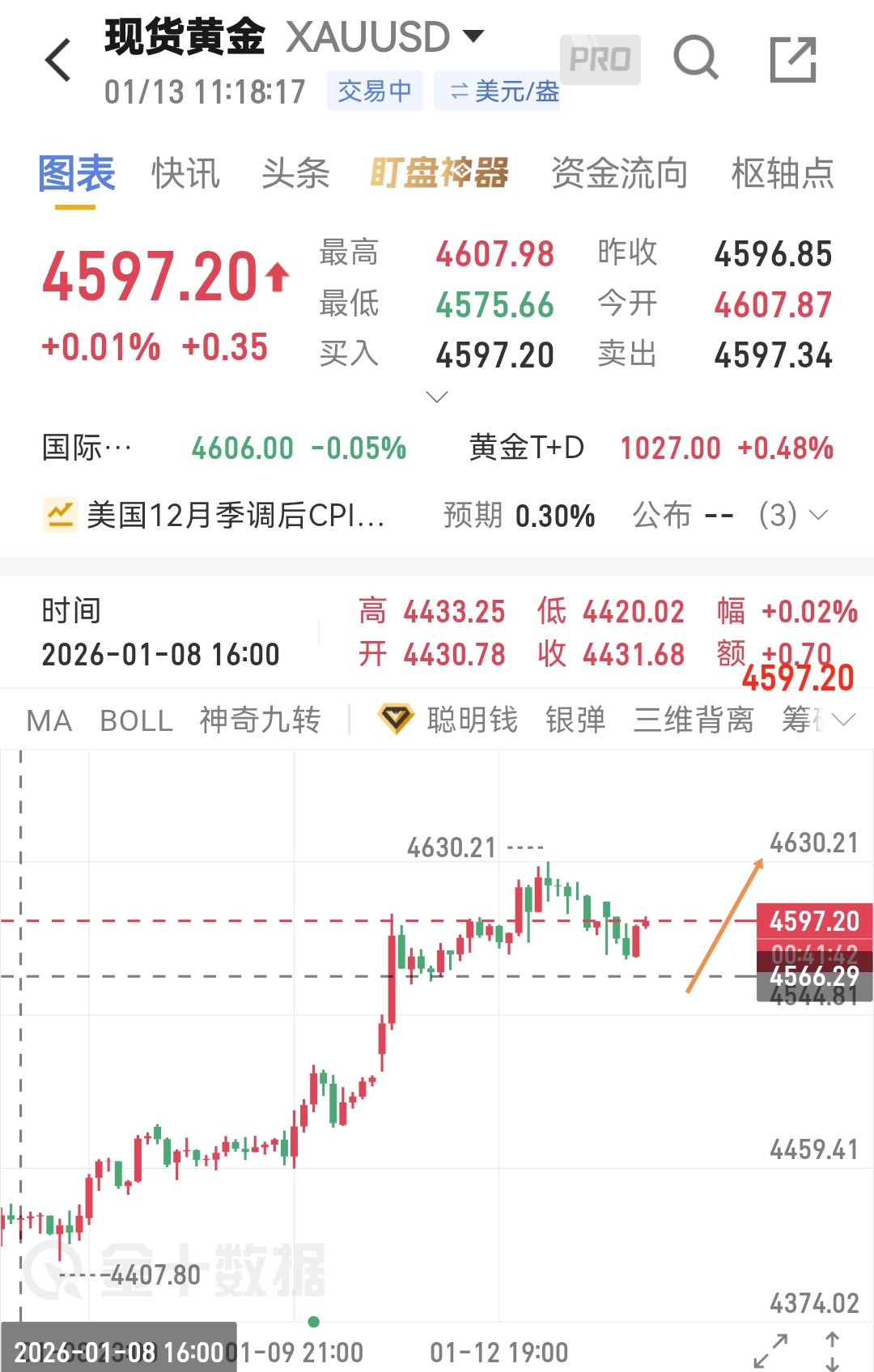 $中国黄金(SH600916)$ 黄金依托支撑4565-4570哆